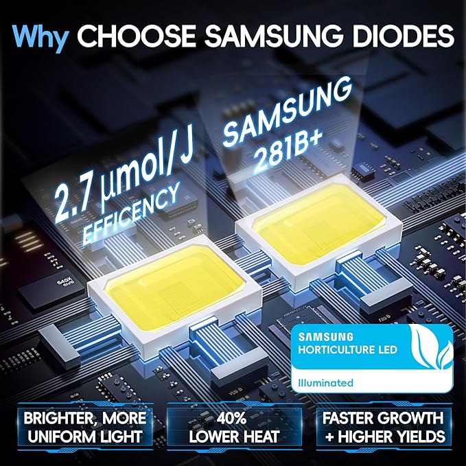 • EXCELLENT DRIVER LED GROW LIGHTS: Our hanging grow lights uses the Sunnypower driver, which enables smart operations: timer settings (1-23H, 24H cycle), dimming from 10%-100% with stepless adjustment, and spectrum adjustment. It also reduces energy consumption, helping save on electricity bills.