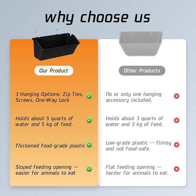 • Durable Plastic Construction: Built to last with thick plastic that won’t crack easily. Resistant to daily wear from chickens, ducks, goats, or pigs.