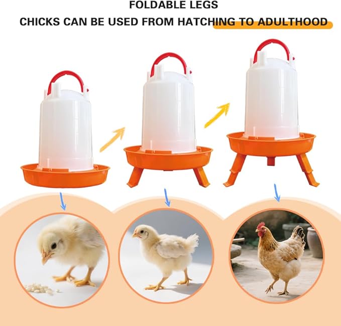 • The poultry feeding kit includes: 2 automatic feeding buckets with a capacity of 3.3 pounds and 2 automatic feeding buckets with a capacity of 0.39 gallons. The bucket is equipped with foldable feet to prevent watering. Prevent internal water from being contaminated.