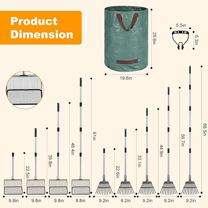 • 【Adjustable Chicken Poop Rake】: Easy to assemble rake head and handle together, adjustable long rake handle reaches up to 68 inches making pick-up and collect chicken manure, garden leaf and debris more comfortable, no bending over for both adults and kids