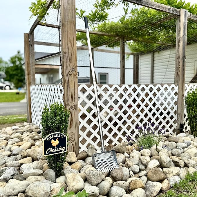 • Worry-Free Cleaning: Thanks to its powder coating, the chicken poop rake resists sticking, and a quick rinse with water keeps it clean and odor-free. This low-maintenance design means less time scrubbing and more time enjoying your farm