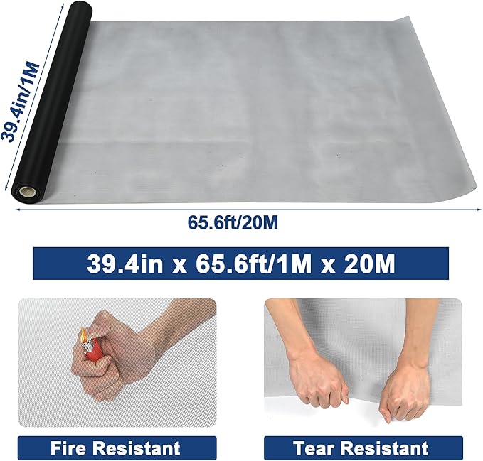 • Larger size: The size of a roll of our window screen is 39.4inchesX65.6feet, the wire diameter is 0.15mm (3/500''), and the mesh number of the screen is 20 mesh. The size of the screen is larger than that of the ordinary screen, and it can be used for a longer time