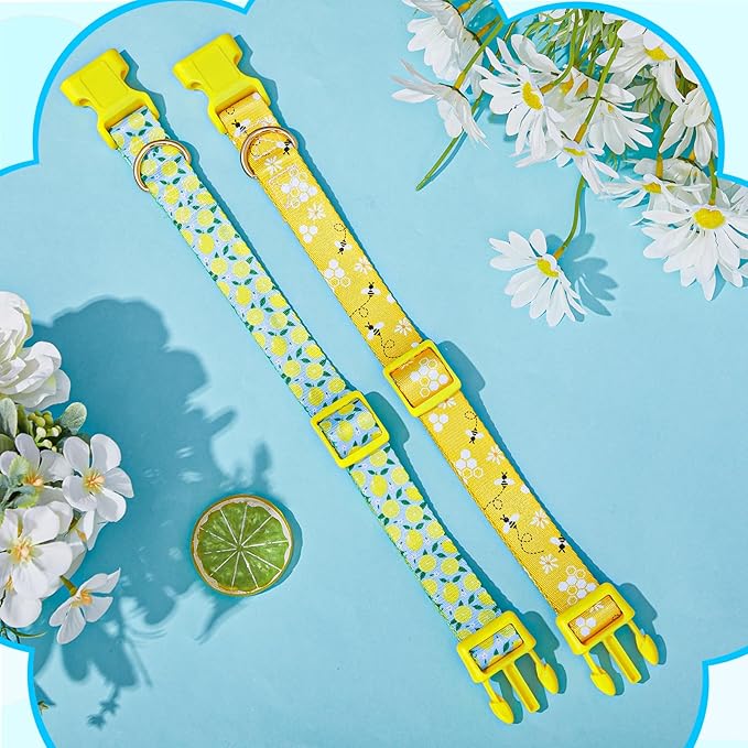 Talltalk 2 Pack Goat Collars with Bells Grazing Copper Bell and Adjustable Nylon Collar Set Loud Bronze Bell for Farm Sheep Cow Sheep Dog Accessories Christmas Thanksgiving Gift(Lemon, Bee)