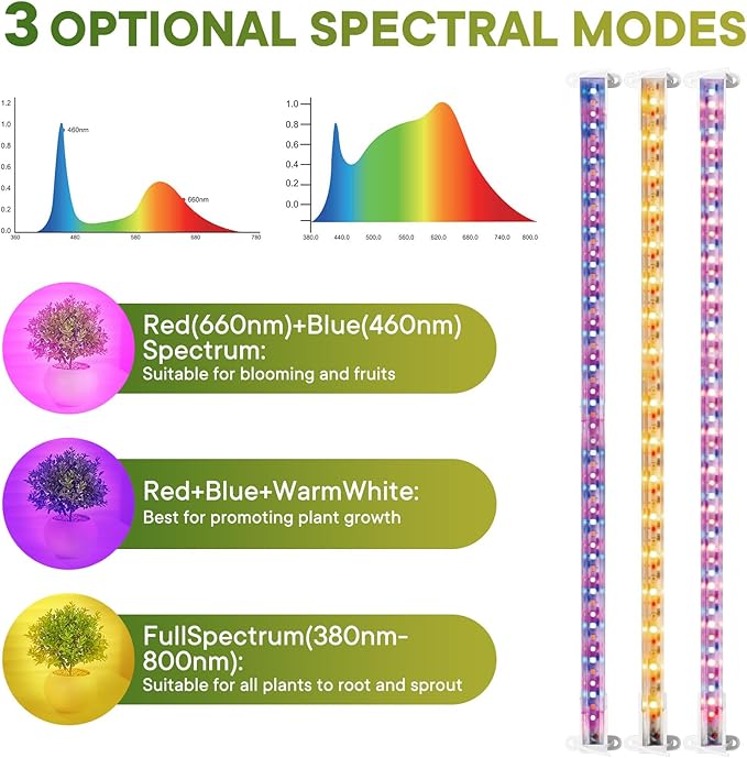 • FULL-SPECTRUM GROW LIGHTS: Equipped with 4 plant growth light strips that simulate sunlight, ensuring each layer gets optimal lighting. Choose from 3 colors (red/warm/blue) and 3 timer settings (4/8/12 hours) to ensure proper plant growth