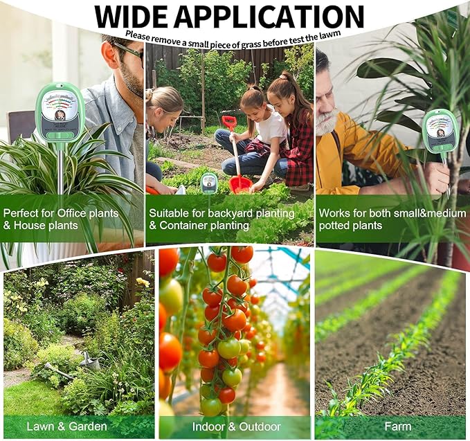 • 🌿 【4-in-1 Soil Test Kit for Accurate Plant Care】This upgraded 4-in-1 soil tester combines a soil moisture meter, soil pH tester, sunlight meter, and fertility sensor in one tool. It provides instant, accurate readings to help you monitor soil conditions and ensure optimal plant health. Perfect for gardeners needing a reliable soil test kit for indoor or outdoor gardening.