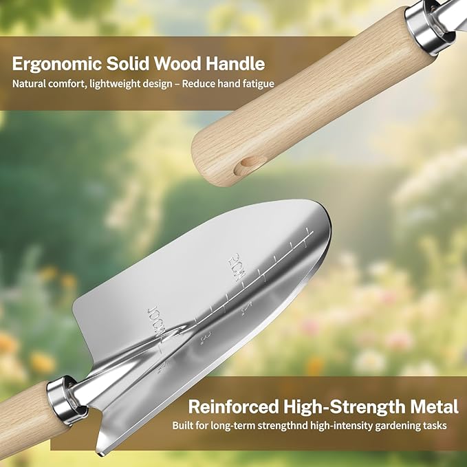 • 【Plant with Precision and Confidence】The shovel blades feature clear depth markings, guiding you to plant or transplant seedlings at the perfect depth every time. Whether you're a beginner taking your first steps in gardening or an experienced green thumb, these precise markings ensure your plants get the optimal start.