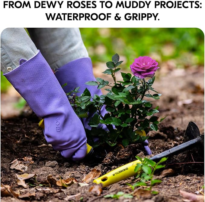 • ▲【Superior Grip & Waterproof】Designed for serious gardeners, extured palm and fingers provide a secure hold on tools, wet surfaces, or slippery objects for safer handling. Waterproof durability meets superior wet/dry traction. These gloves deliver precision and protection, whether pruning, planting, or tackling messy tasks.