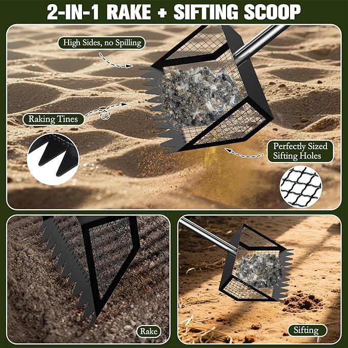 • 【Versatile Scooper for Multi-Use Cleaning】: More than just a chicken coop cleaning tool, this sifting shovel works as a cat litter scooper, garden sifter, or stable cleaner. The ultimate versatile tool for any pet household, farm, or garden—wherever a lightweight, efficient scooper is needed.
