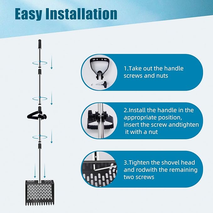 • 【Chicken Coop Cleaning Tools】Installing our chicken coop cleaning tools is a breeze. The head and handle are connected by secure screws that ensure a stable and long-lasting connection.The simple swivel thread connection makes it easy to adjust and use. Meanwhile, the non-stick design of the shovel head makes cleaning a snap