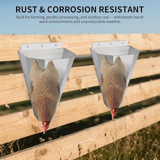 【Thicker & Stronger Metal】Compared to standard models, this large killing cone is made of upgraded heavy-duty steel that resists bending or deforming. It handles poultry up to 8–18 lbs and is rust- and corrosion-resistant for long-term use.