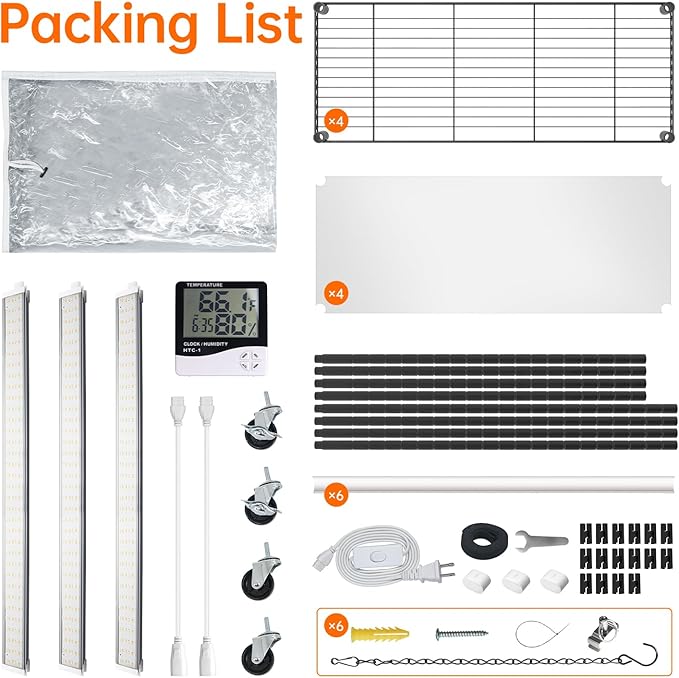 • Portable with Heavy-Duty Wheels - Four industrial wheels (two lockable) allow effortless mobility, while the rust-resistant design guarantees durability. Move your indoor greenhouse with grow light seamlessly or lock it securely in place