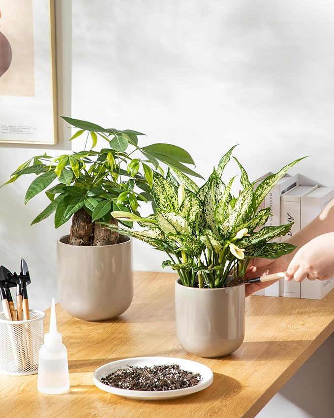 • 🌿High-Quality & Long-Lasting Ceramic Build – Crafted from high-fired ceramic, these planters offer exceptional durability and resistance to wear. They withstand strong sunlight and harsh winters without fading, cracking, peeling, or frosting. Designed to combine beauty with strength, they bring lasting elegance to your indoor garden. The sturdy build resists daily handling, watering, and temperature changes—making them a reliable and stylish choice for any space.