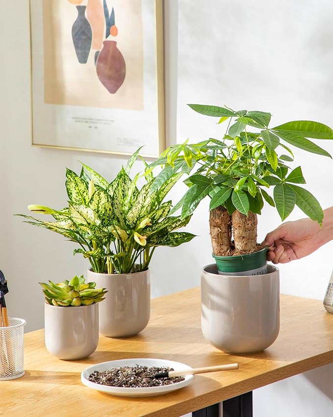 • 🏠Perfect Trio Set — Includes 3 ceramic flower pots in sizes 4", 5", and 6", ideal for various small planters, planters for indoor plants, succulents, cacti, herbs, or decorative flowers. A stylish choice for tabletops, windowsills, shelves, or any space in your home. Whether it's a cozy apartment or a spacious home, these planters make the space feel more alive.