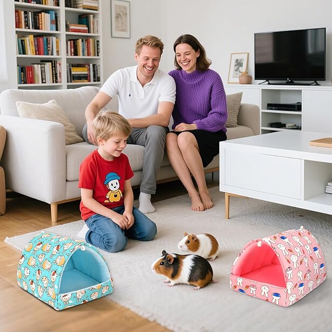 • Friendly Design: Adopting blue and pink, the hamster nest is not easy to get dirty,very practical to use, with bright and beautiful patterns. The integrated design avoids accessories from slipping out and can also avoid the claws of small animals from being caught. The thickened inner cushion makes the Guinea pig bed stand upright and not easily deformed