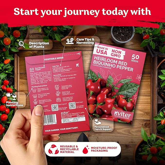 • Fast Maturity: Enjoy fresh teardrop peppers in 90–95 days from transplant. Sow pimenta de bico seeds 1/4 inch deep in well-draining soil indoors, transplant when biquinho pepper plant is 6-8" tall.
