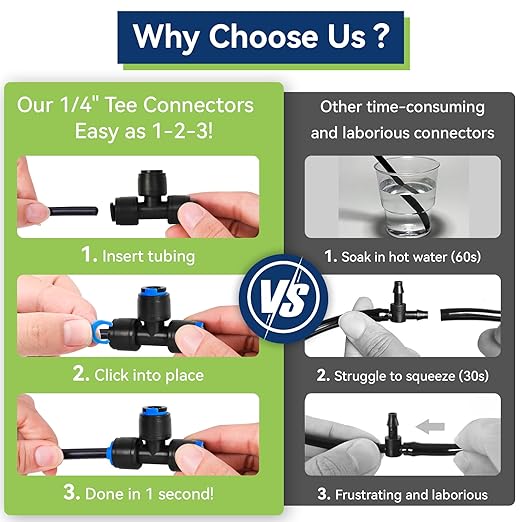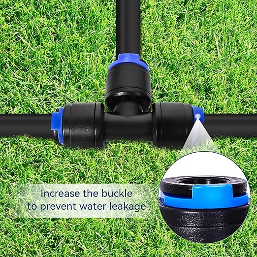 40 Pack 1/4" Drip Irrigation Tee Connectors, Quick Connect Universal Drip Irrigation Tubing Coupling Valve, Connector Locking Fitting for Sprinkler or Drip Irrigation System