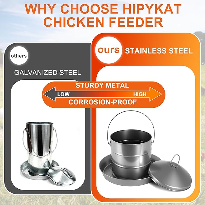 • 🐔Durable Metal: Crafted from premium 304 stainless steel, this feeder ensures rust-free performance and safe feeding for all your poultry, both indoors and outdoors.