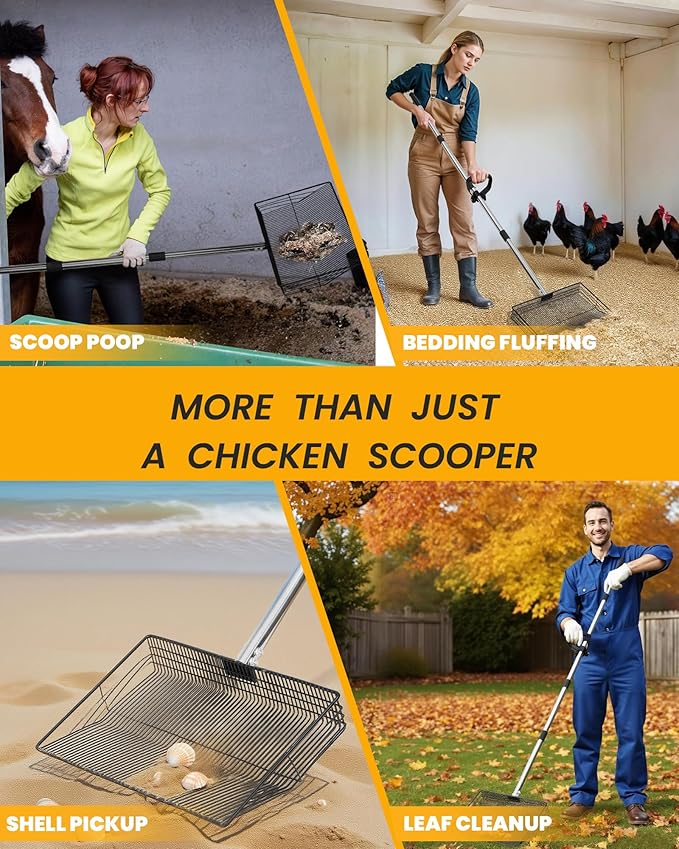 • Multi-Purpose: This sifting shovel is an essential cleaning tool for chicken coops and is also suitable for gardens, stables, dog kennels, sandpits, and litter boxes. Whether you’re a backyard farmer, gardener, or pet owner, this sturdy and efficient cleaning tool will make your daily chores much easier