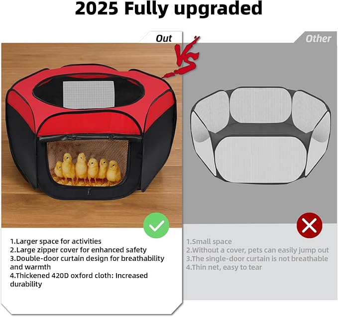ALL-SEASON MULTI-PET USE: Chicken is warm in winter, cool in summer. Suitable for baby chicks, ducks, quail, rabbits, cats, or dogs. Versatile chicken playpen and pet nest for indoor or outdoor use.