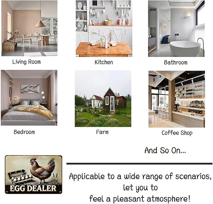 • 🏑 Vintage Rustic Aesthetic: Distressed metal finish with weathered edges mimics retro farm signage, adding cozy, old-timey charm to farmhouse kitchens, coops, or gardens.