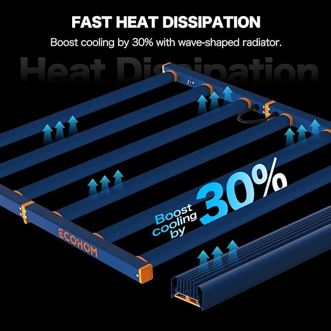 • 【Efficient Heat Dissipation Design】The grow light design and aluminum heat sink on the back facilitate air circulation and rapid heat dissipation.​ Reduce ambient heat in the growing space.​ The foldable design of our grow light no need to assemble. Save your time and space during installation, storage, transportation.