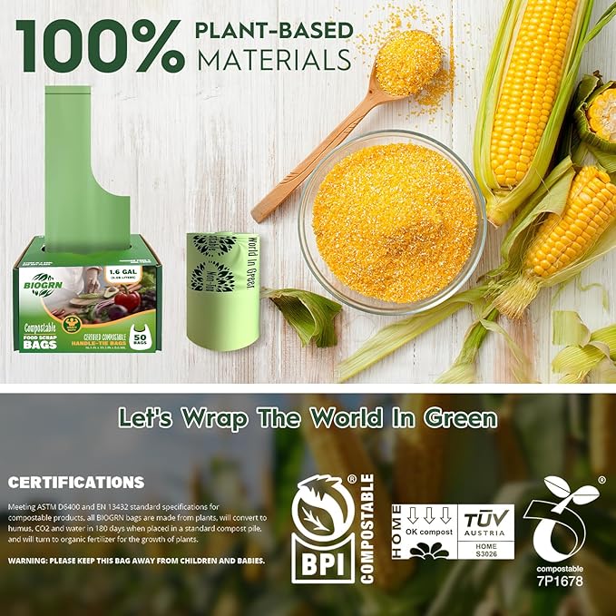 • Certified Reliability: Our 1.6 gallon compost bin bags are BPI-certified, OK Compost HOME and OK ompost INDUSTRIAL certified by TÜV Austria, and Seedling-certified by DIN CERTCO – fully complying with US ASTM D6400 and EU EN 13432 international standards.