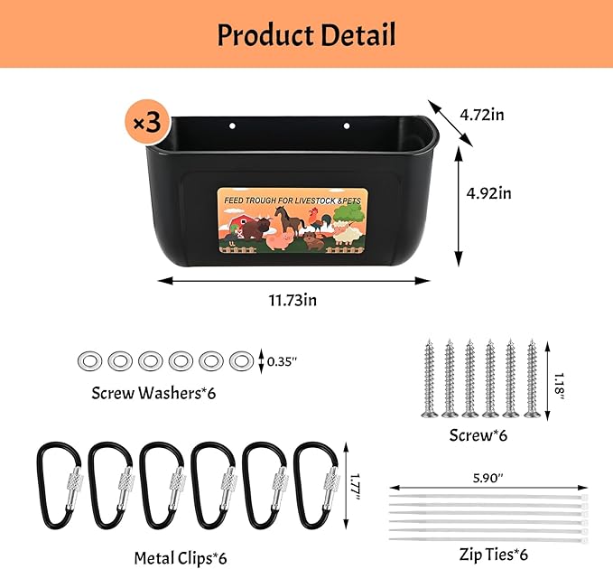 • 【Complete Chicken Coop Feeder Kit】Our set includes 3 hanging chicken feeders, each feeder equipped with 2 metal clips, 2 screws, 2 screw washers and 2 Ties. Cieex Poultry Feeders designed for mess-free feeding, these keep feed clean and prevent waste