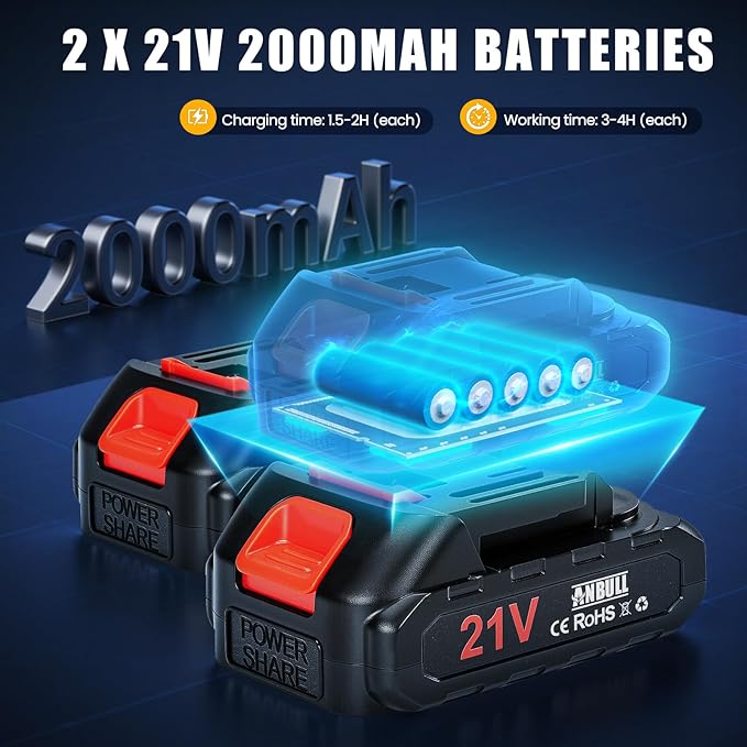 • Electric brushless motor: Anbull electric pruning shears are equipped with a 500W high-torque brushless motor, delivering strong, stable power with lower operating temperature—ensuring more comfortable long-term use and 100% efficiency boost. Whether pruning dense branches or tackling tough yard work, it’s the perfect choice!
