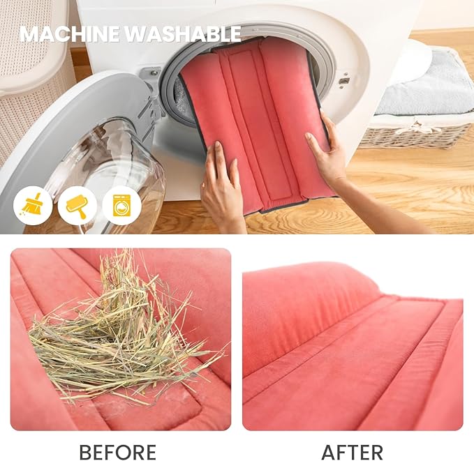 • Reversible Design: Both sides of the rabbit bed are crafted from ultra-soft, non-shedding fabric that’s kind to rabbit skin. Reinforced edges ensure long-lasting use
