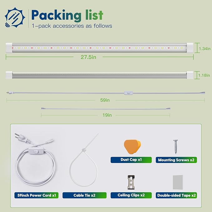 • Easy & Flexible Installation: Choose from four simple installation methods for our LED grow light—hanging, ceiling, double-sided tapes, or cable tie—to match your indoor garden's layout effortlessly. Enjoy the convenience of a quick, plug-and-play setup that saves you time and aligns perfectly with your space