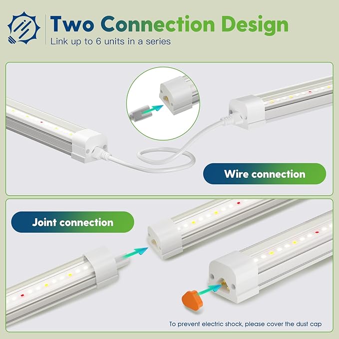 • Robust Cover & Soft Glow: This T8 grow light for plant shelf, shielded by a transparent PC cover, offers robust LED protection, reducing the risk of dead lights and the hassle of frequent replacements. Enhanced with clear bright panel, it delivers a gentle, even glow that fosters lush and vibrant indoor gardening