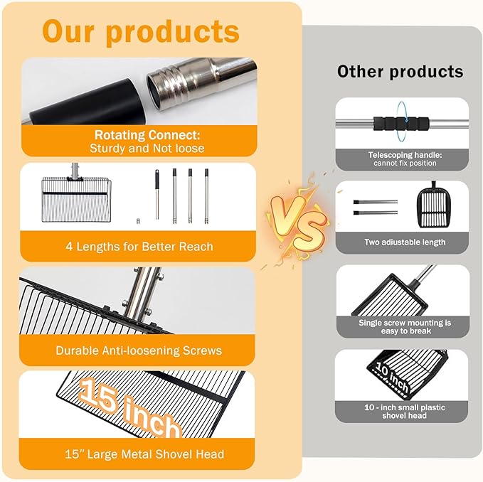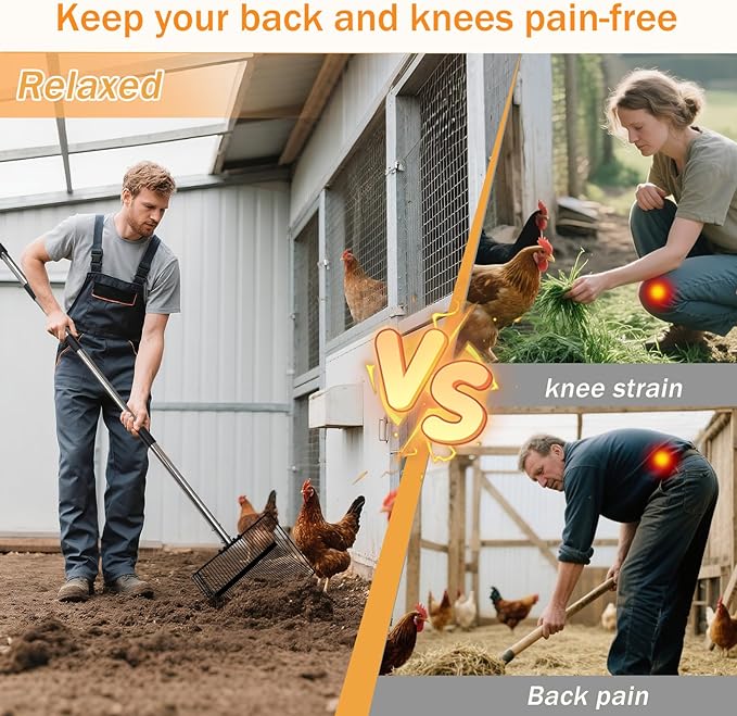 • 【All-scenario cleaning tool】 Universal for chicken coops, dog kennels, cat litter boxes, gardens, and sandboxes. A must-have for farmers, ranchers, and pet owners. Heavy-duty metal construction, lightweight design balances strength and portability.