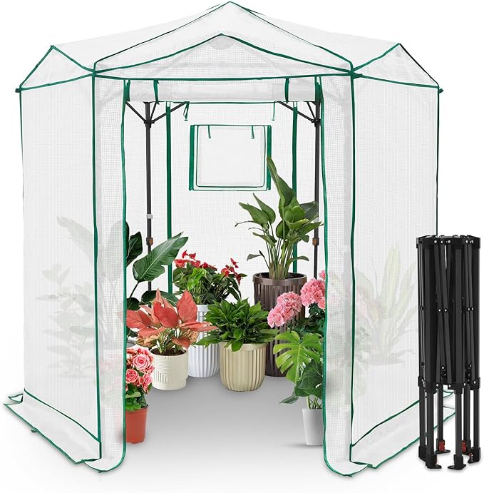 EAGLE PEAK 6.6x6.6 ft Hexagon Pop up Greenhouse, Portable Walk-in Grow Tent for Seed Starting, Garden Plants, Indoor Outdoor Green House, All-Weather Plant Shelter, PE Cover, White/Clear