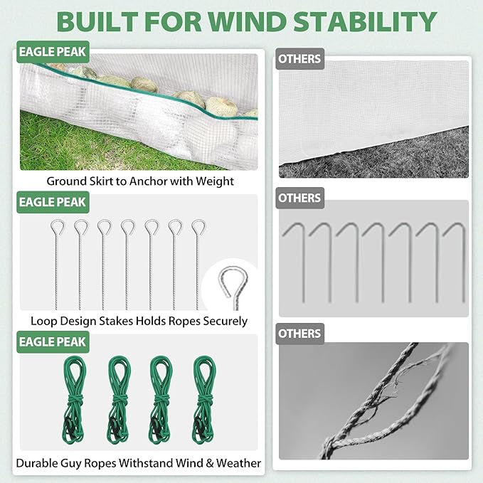 • EAGLE PEAK PROMISE: EAGLE PEAK offers a 1-year limited after sale protection from the original date of purchase. Unlike many other greenhouse manufacturers, EAGLE PEAK offers this for our frames, tops! If you have any other questions, please contact our professional service team