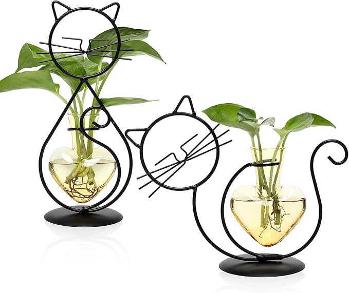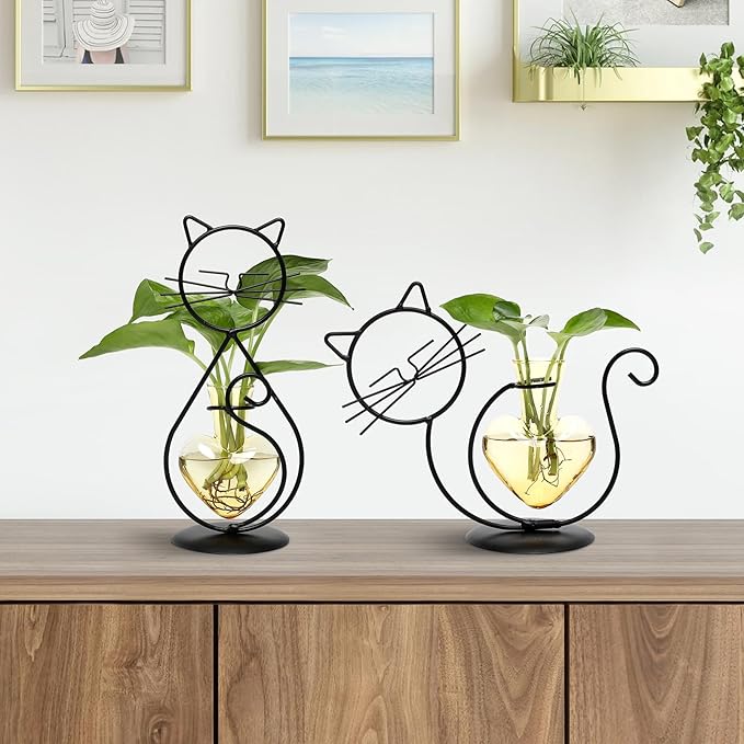 Plant Terrarium Plants Propagation Station Cat Lover Gifts for Women Home Office Decor Cat Desk Accessories