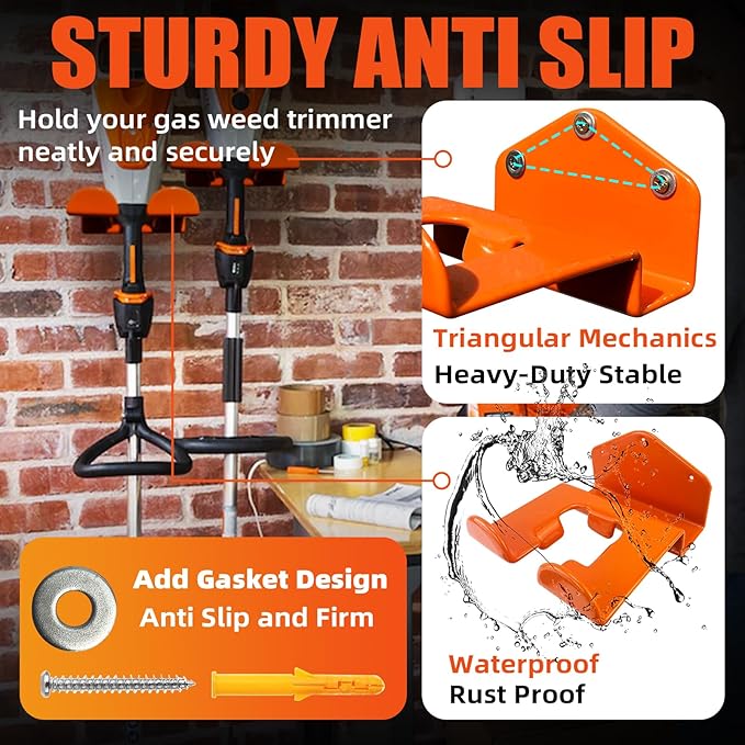 • Package Included: The trimmer rack hook kit come with 4 racks, 12 screws, 12 expansion tubes and 12 gaskets. Ensure trimmer wall hanger has more firm and stable. Garage rack suitable for storing tools in garages storage,chainsaw storage,gardens, tool rooms, and other places.