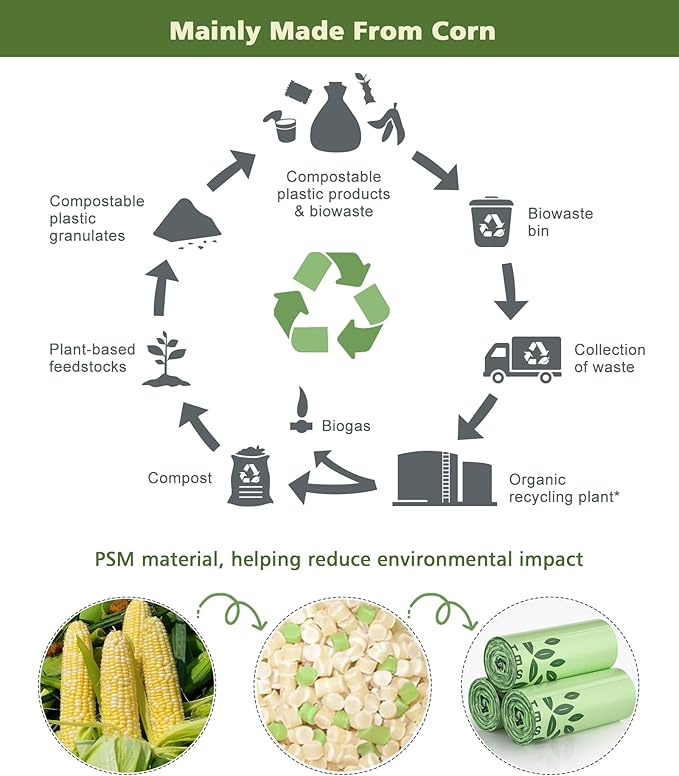 • 【Material】: The compostable bags are made from a blend of plant-based cornstarch materials, which is friendlier to the environment.Less plastic by design. biodegradable compost bags Adopt carbon neutral production methods to reduce dependence on oil and realize energy saving and emission reduction. Actively use biodegradable paper packaging boxes to promote the reduction of plastic pollution on the planet and leave a green future for people.