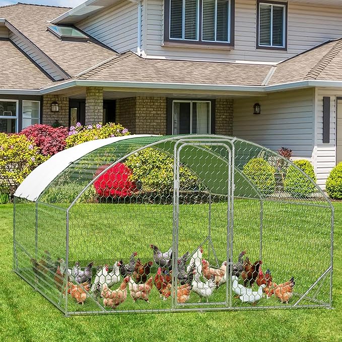 Large Metal Chicken Coop, Walk-in Poultry Cage, Large Chicken Run with Waterproof & Anti-UV Cover, Chicken Coop Run with Lockable Doors for Outdoor, 9.8 x 13.1 x 6.6FT