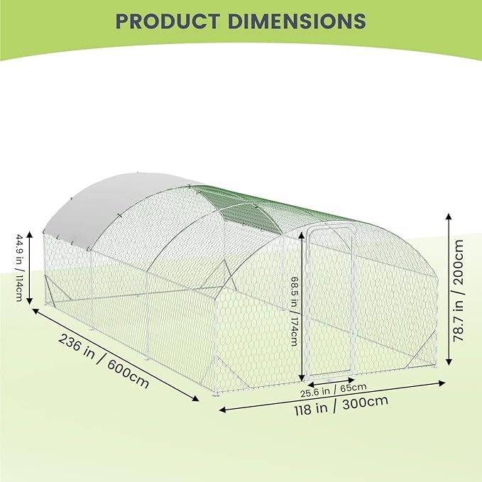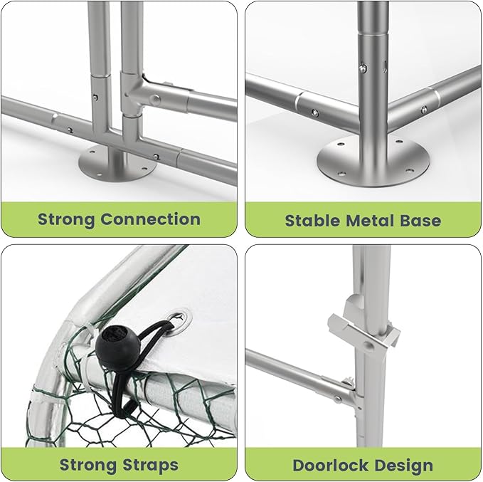 • HIGHLY DURABLE STEEL CONSTRUCTION: This heavy duty metal chicken coop is manufactured with a high quality steel frame designed to provide a sturdy structure for long term use. To enhance stability, we have designed extra support posts and triangular brackets, combined with stainless steel and galvanized technology, making the chicken coop with excellent corrosion resistance.