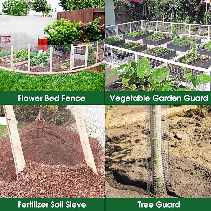 • Versatile Applications: This hardware cloth roll unfolds effortlessly while maintaining sufficient sturdiness, making it suitable for a wide range of applications. Whether it's constructing chicken coops, rabbit enclosures, duck pens, window screens, garden fences, tree guards, drainage gutters, or soil sifters, this galvanized hardware cloth is up to the task