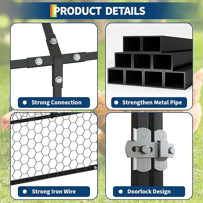 • Quick & Easy Assembly: Comes with detailed installation instructions, making setup straightforward—giving you more time to enjoy your backyard chicken pen and less time assembling. Perfect for any poultry keeper or backyard homesteader