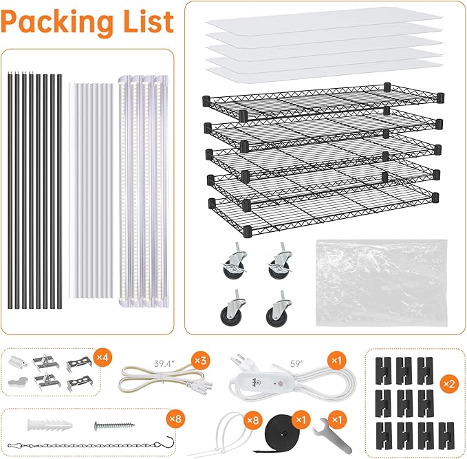 • Spacious Indoor Greenhouse Cabinet - Measuring 59" H x 13.8" W x 29.5" L, this 5 tier grow light shelf provides ample space for your plants. It is perfect for cultivating or showcasing indoor plants such as succulents, aloe vera, and flowers. The plant shelf with grow light provides optimal lighting conditions to meet the growth demands of various plants. The professional grow lights for indoor plants are ideal for seed starting, growth, and flowering stages