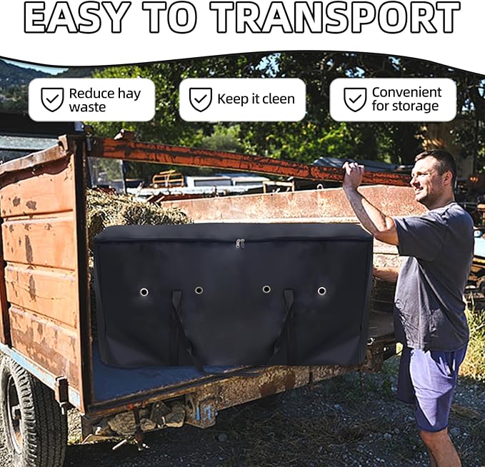 • 【Large Capacity】: Rectangular hay bag with a large capacity (44x18x22 inches), you can store a large amount of hay and provide sufficient feed for your livestock. And it helps with efficient transportation and storage of hay, ensuring a comfortable and healthy feeding experience for your animals.