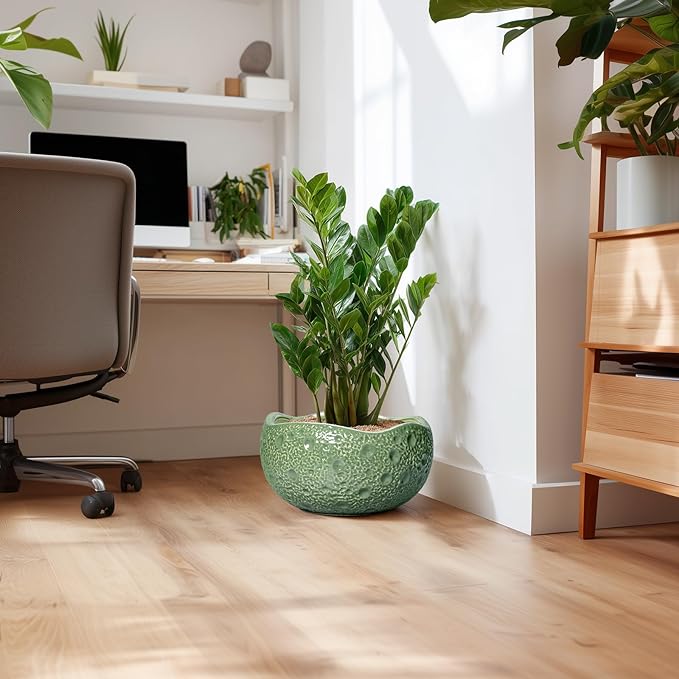 • Suitable for a variety of plants: This green planter is an ideal choice for growing bonsai tree, snake plant, orchids, money tree, zz plant, monstera, peace lily, pothos, bired of paradise, fiddle leaf fig, pachira aquatica, succulent plants, cacti, aloe vera, mint, rosemary, african violet, rainlily, parsley, chrysanthemum, herbs, and other indoor & outdoor plants