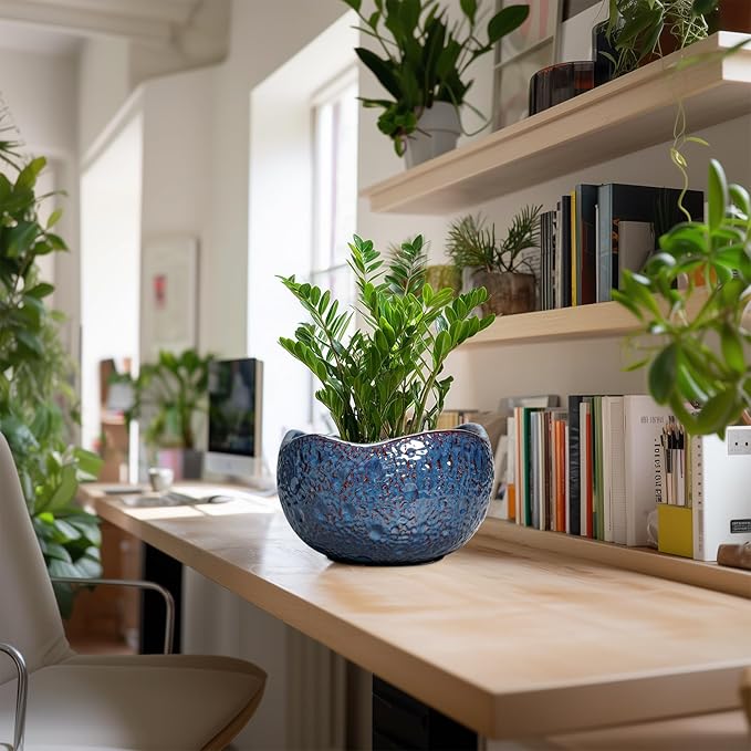 • Suitable for a variety of plants: This blue flower pot is an ideal choice for growing bonsai tree, snake plant, orchids, peace lily, pothos, money tree, zz plant, monstera, bired of paradise, fiddle leaf fig, pachira aquatica, succulent plants, cacti, aloe vera, mint, rosemary, african violet, rainlily, parsley, chrysanthemum, herbs, and other indoor & outdoor plants
