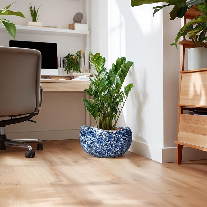 • Suitable for a variety of plants: This blue planter is an ideal choice for growing bonsai tree, snake plant, orchids, money tree, zz plant, monstera, peace lily, pothos, bired of paradise, fiddle leaf fig, pachira aquatica, succulent plants, cacti, aloe vera, mint, rosemary, african violet, rainlily, parsley, chrysanthemum, herbs, and other indoor & outdoor plants