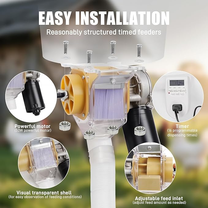 • PLEASE NOTE BEFORE PURCHASING: This feeder requires a hanging bucket or an empty bucket with a bracket (to be purchased by yourself), and manual hole opening installation is required. You will need hole opening tools and good Need DIY ability;