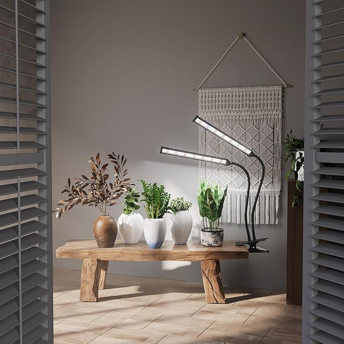 GooingTop Grow Light LED Gooseneck Lamp,Dual-Head White Full Spectrum 148 LED Plant Lamp with Red Blue Light Clip-on Desk for Indoor Plants Growing,Diming & Auto Timer