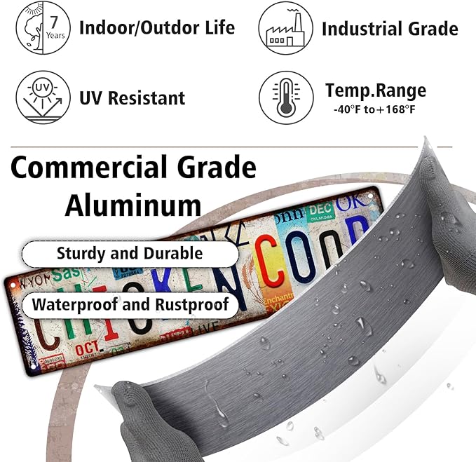 Vintage Chicken Coop Accessories – Funny Rooster Garden Signs and Grunge Room Decor – Country Farmhouse Wall Art for Outdoor Kitchen Gifts for Women and Hen Lovers