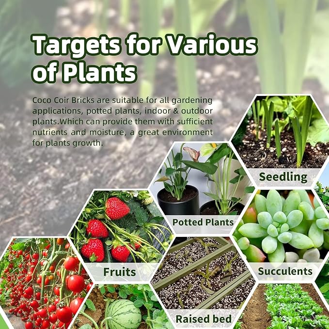 • 【EASY To Use】: Each coconut brick will expand several times after adding moisture, please use a large container to replenish the moisture of the coconut brick. Coconut bricks have low natural plant nutrients and are recommended to be used together with nutrient soil.